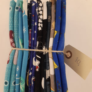 2,5 meter stof 5-8 forskellige stykker. kun 1 pakke af hver.